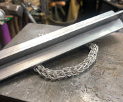 The X-link mandrel simplified this multi link process by allowing the maker to make one X shaped link for weaving vs having to make two oval links and crossing them before weaving. once cut off the mandrel the links are soldered or fused