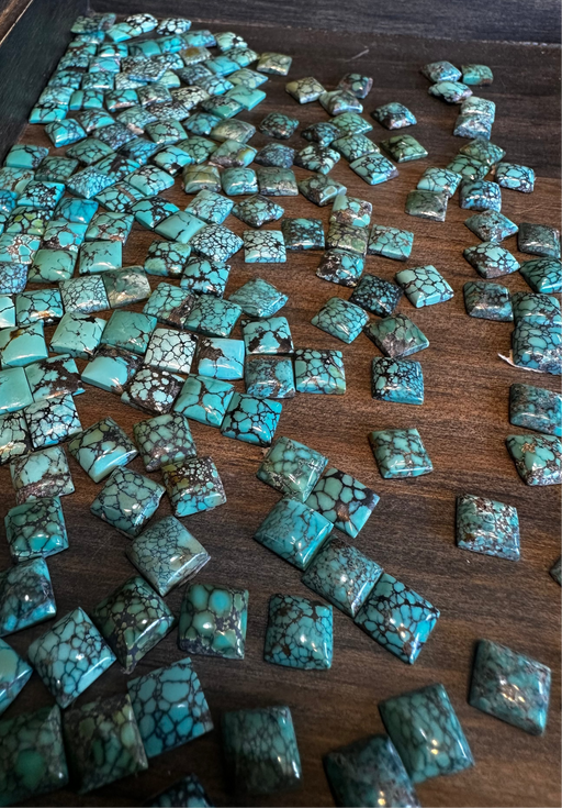 Lion Punch Forge8 mm square (price per stone) Old Stock purchased over 10 years ago in Tucson Hubei turquoise is a highly regarded, often webbed, Chinese gemstone...